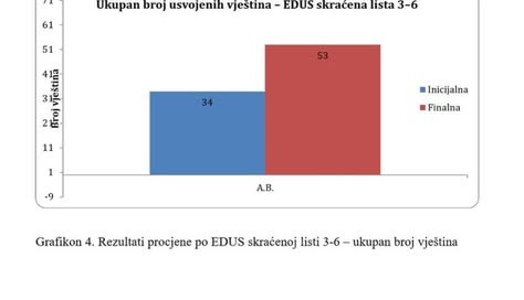 Kroz primjenu EDUS metodologije i individualnih razvojnih programa, mališani dobi do 6 godina ostvarili su mjerljiv i značajan pomak. Podaci iz grafikona pričaju priču o trudu, upornosti i stručnosti.